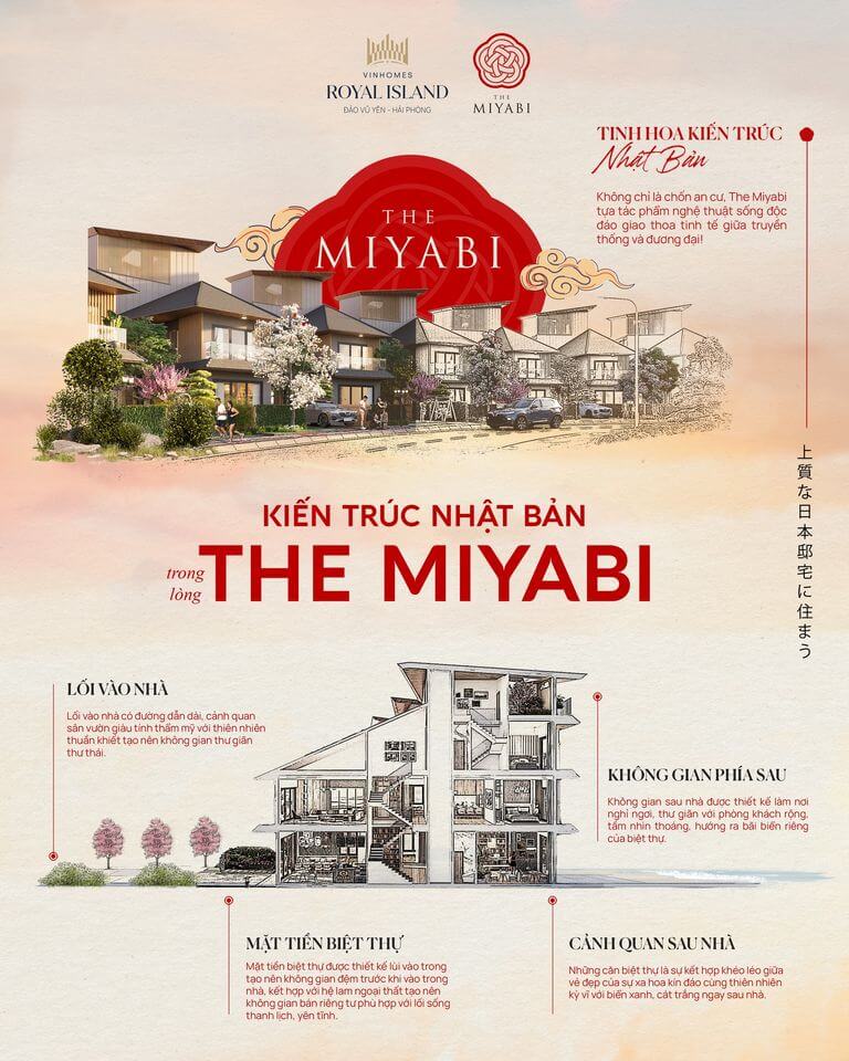 Kiến trúc Nhật Bản từ lâu được xem là một trong những tinh hoa của nền kiến trúc thế giới, ghi dấu ấn bởi sự kết hợp hài hoà màu sắc cùng với nét tối giản đặc trưng của văn hóa Nhật. Lấy cảm hứng từ chính vẻ đẹp tinh tế này, những căn biệt thự The Miyabi Vinhomes Royal Island mang tới vẻ đẹp độc bản phong cách Phù Tang trang nhã, chuẩn mực từ kiến trúc đến hơi thở cuộc sống: