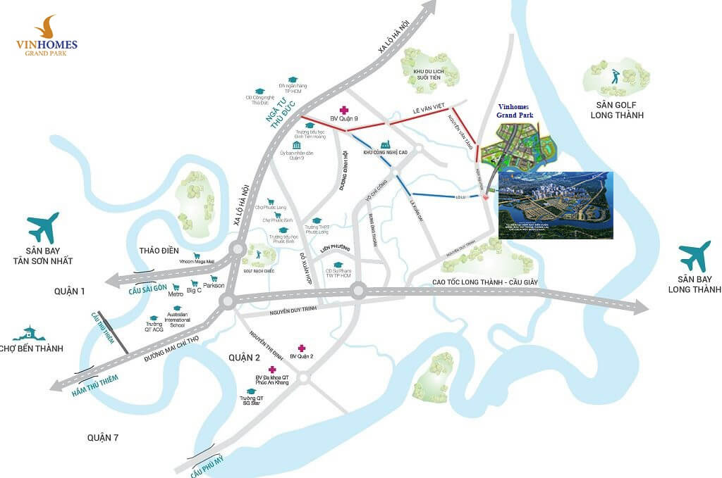 Vị trí Vinhomes Grand Park tại địa chỉ: Số 512 đường Nguyễn Xiển, Phường Long Thạnh Mỹ, Quận 9, TP. Thủ Đức, TP. Hồ Chí Minh.
