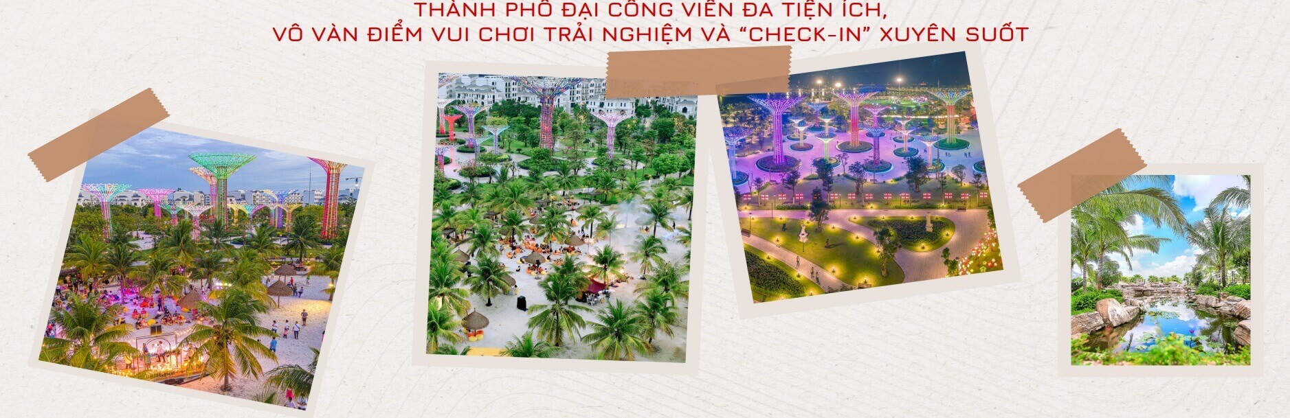 Tiện ích Công viên ánh sáng 36ha, công viên Vinwonders, hệ thống trường học các cấp, bệnh viện Vinmec, trung tâm thương mại Vincom, hồ bơi, khu thể thao, phố ẩm thực…